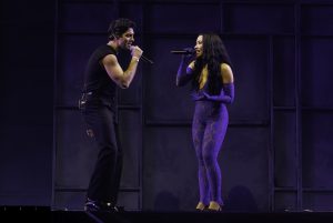Alongside the opening night of the tour, Demi Lovato first surprised the audience with two new singles, “Low Rise Jeans” and “Fantasy.” She then brought out Joe Jonas to perform Camp Rock classics “This is Me” and “On the Line,” erupting the crowd in pure excitement and nostalgia.